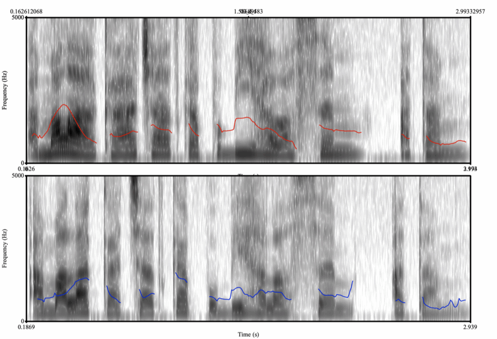 Spectrogram Illustrating the Differences Between the Language Variants Presented During the Behavioral and Neurophysiological Experiments.